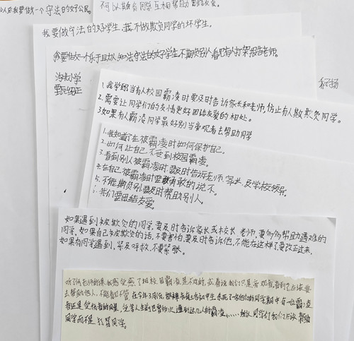 没有多媒体,就以演讲的方式;没有话筒,就用小喇叭;没有操场,就在院子里……“形式不重要,只要对学生们的未来有那么一点点助益,本次宣讲的目的就达到了”。何佳鑫律师为师生们带来了题为《共建和谐校园:对校园霸凌说不》的演讲,通过一系列真实案例向学生们普及了刑事责任年龄等基础法律知识,生动揭示了校园霸凌行为的种类、特点、危害,以及如何防范、制止霸凌行为,呼吁大家既不做施暴者,也不做受害者或者旁观者,共建和谐、安全、友好的校园环境。宣讲结束后,孩子们纷纷围在律师身边,写下自己对本次普法活动的感想和收获,他们对律师职业充满了好奇和向往。律师们耐心地解答孩子们的疑问,与他们分享自己的职业经历和感悟。这一幕幕温馨的画面,不仅展现了本所律师的职业价值和社会责任,也彰显了学生们对法律的尊重和热爱。