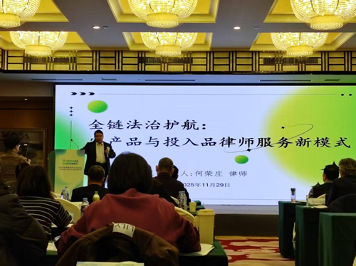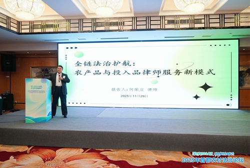 期间,河北庄鼎律师事务所主任何荣庄律师受邀参加了该论坛,并以《全链法治护航,农业投入品和农产品律师服务新模式》为题进行了主旨演讲,他从农牧业为何急需律师提供全链服务、河北庄鼎事务所的经验做法、以技术实证推进无罪辩护的可行性、出口农牧产品退运危机如何逆转、生物肥料专利攻与防、如何落地农业全产业链律师服务、首都全链律师服务构建的优势与路径、让律师服务成为农业新质生产力七个方面,结合我所办理的案件进行了全面阐述。继而率先提出全产业链律师服务乡村振兴架构的理论与实践,同时指出以“法律+技术”服务为基础,以标准化合同模板、快速响应机制及数字化存证系统为方式,为企业提供从生产到出口全流程高质效的服务模式,得到与会的专家学者普遍认可。