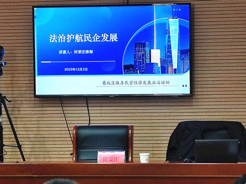 河北庄鼎律师事务所何荣庄律师受邀担任主讲嘉宾进行了全程授课。何荣庄律师围绕着民营经济发展这一主题,结合自身丰富的法律实务经验,进行了深入浅出的讲解,重点阐述了当前民营经济发展面临的常见法律风险与挑战,解读了国家及地方层面关于支持民营经济、保护产权、促进公平竞争的相关法律法规与政策精神。从法律实践角度,就司法保障、政府部门如依法履职、规范执法、精准服务、企业如何增强法治意识、健全内控机制、防范化解经营风险等方面,提出了具有针对性和可操作性的意见建议。案例详实,分析透彻,得到了与会人员的高度评价。