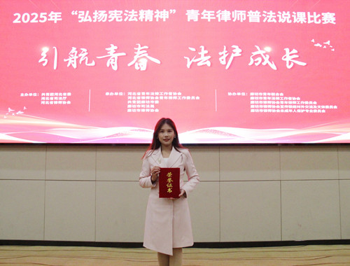 2025年12月26日,由共青团河北省委、河北省司法厅、河北省律师协会主办的“2025年‘弘扬宪法精神’青年律师普法说课比赛”在廊坊市圆满落幕。本次比赛作为展示全省青年律师普法能力的重要平台,吸引了来自全省各地市的35名优秀青年律师同台竞技。经过激烈角逐,河北庄鼎律师事务所何佳鑫律师凭借扎实的专业功底和生动的普法说课表现,最终荣获全省三等奖。